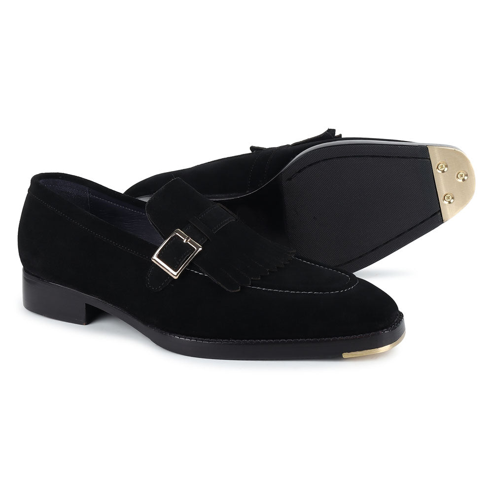 A tuxedo or formal black suit should be worn with these loafers. The shoes have a shiny black upper and a low-cut design. It is perfect for formal events such as formal party, weddings or a ball dance. But they might not look appropriate for everyday use.